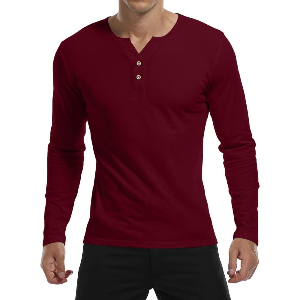 Get the YTD Mens Summer Casual Short Sleeve Henley T-Shirts Button Placket Plain V Neck Shirts(Long Sleeve Wine Red) you want at a price you can afford with our markdown sale.